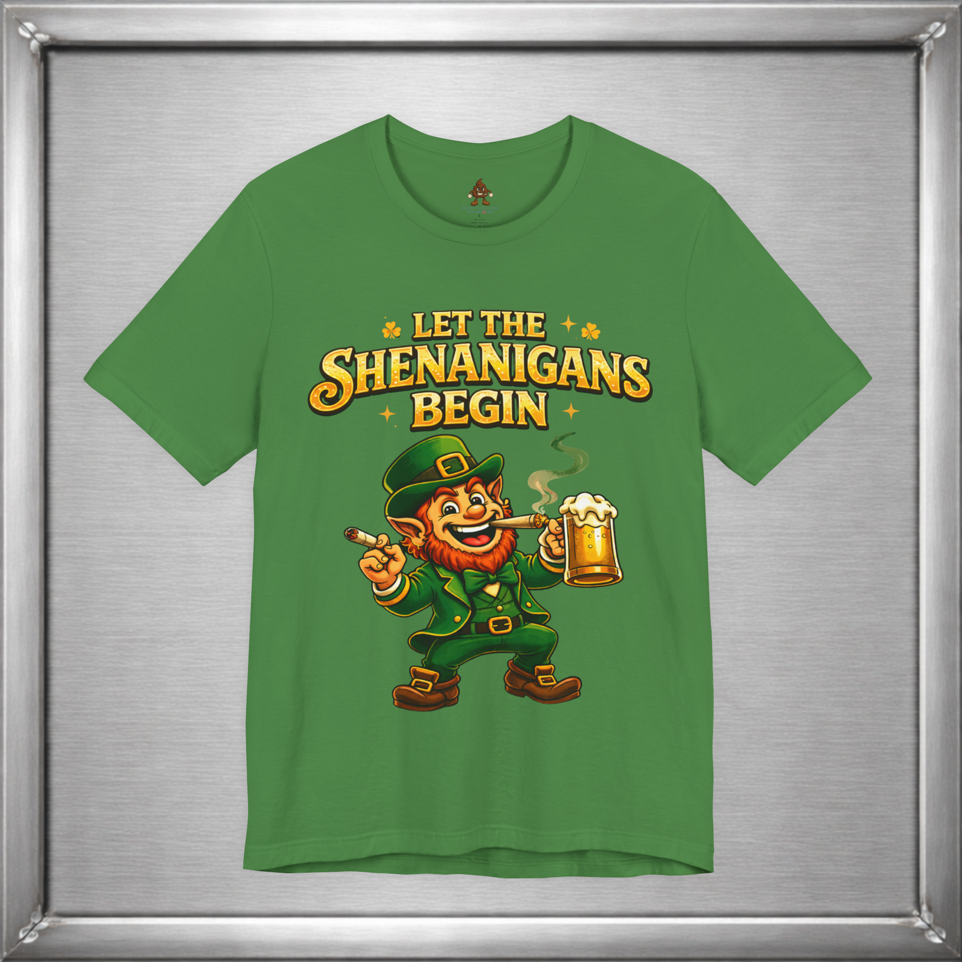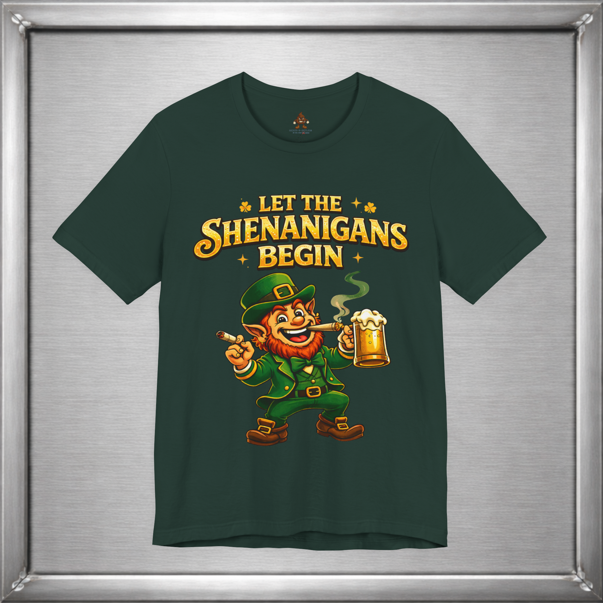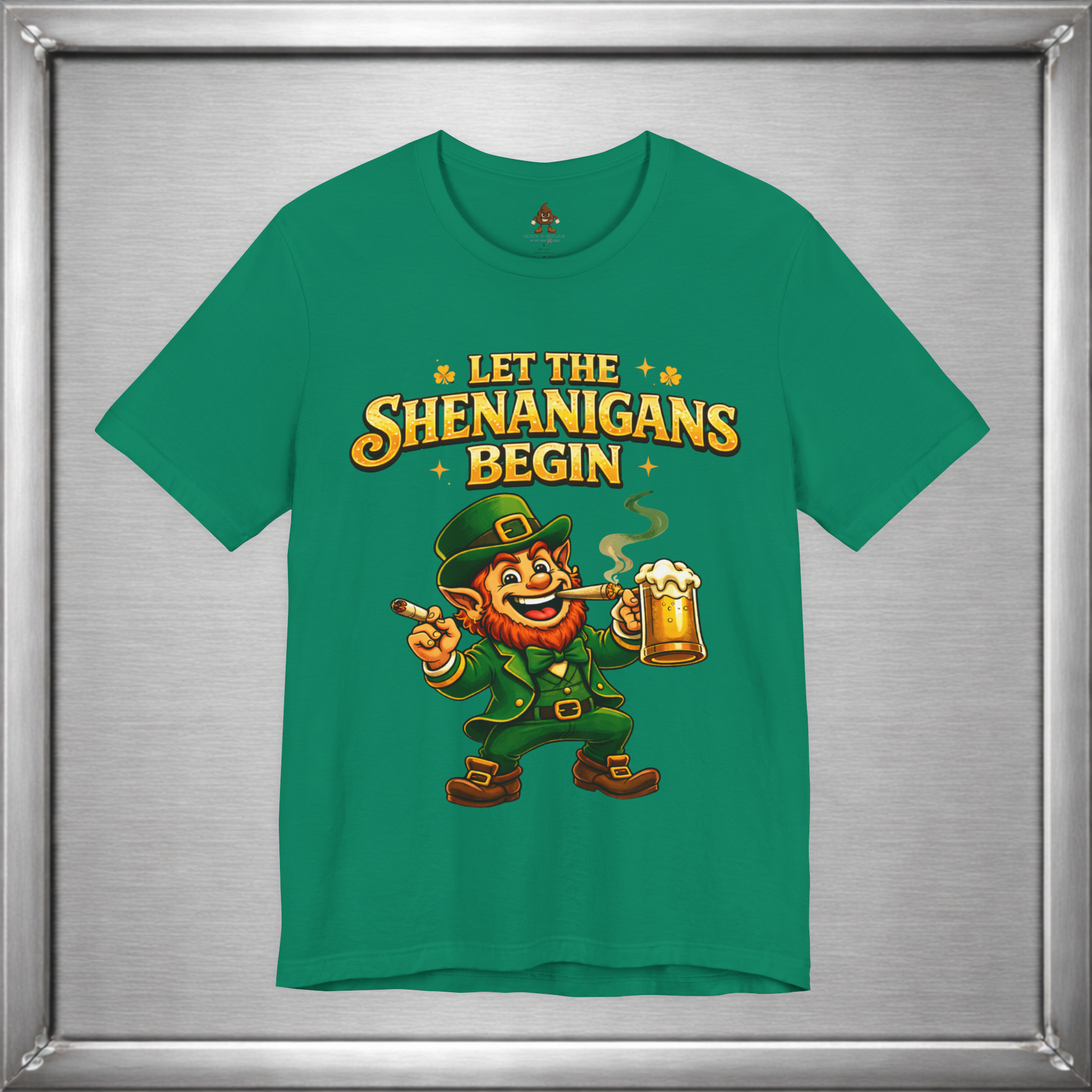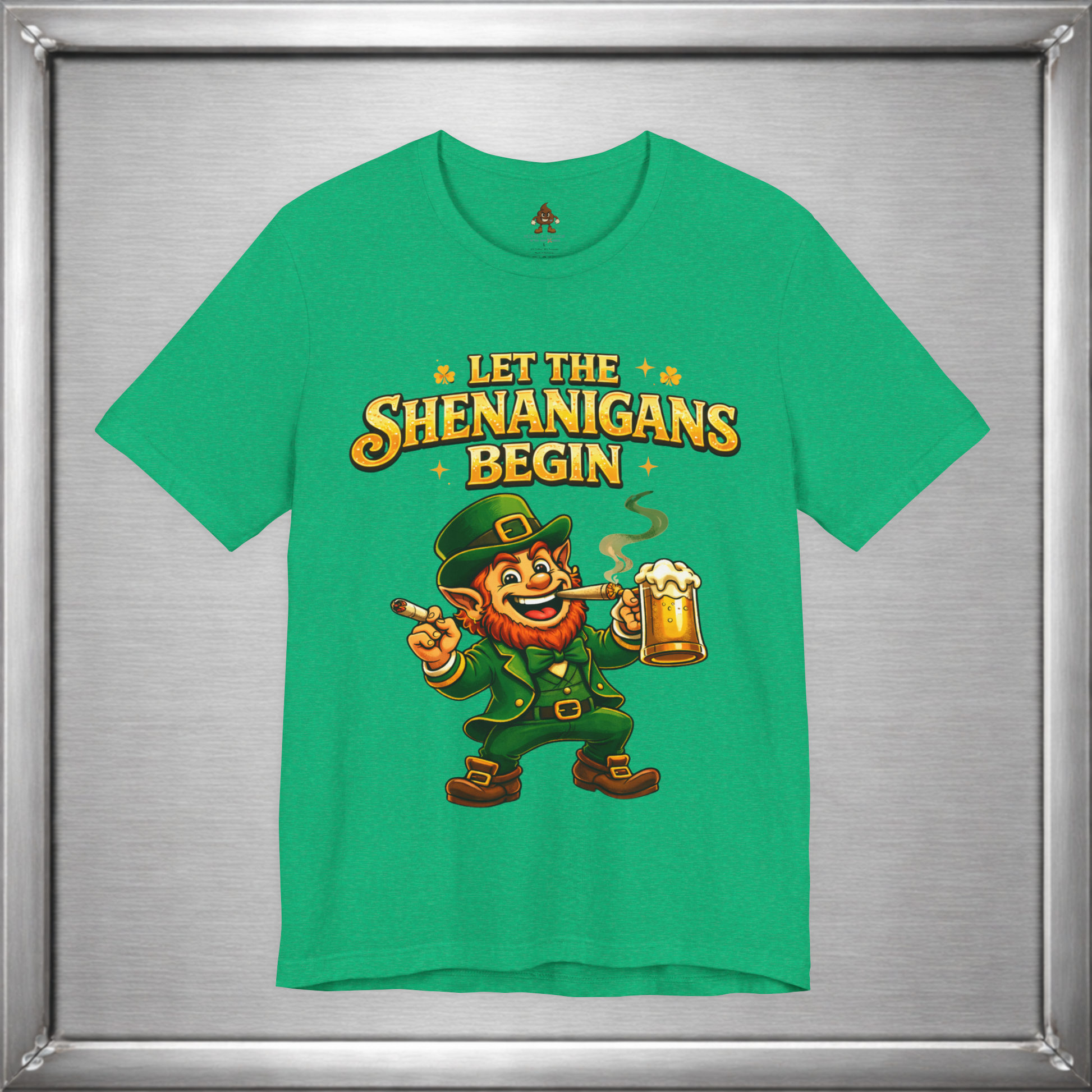 Let the Shenanigans Begin – Irish Mischief Leprechaun Graphic T-Shirt