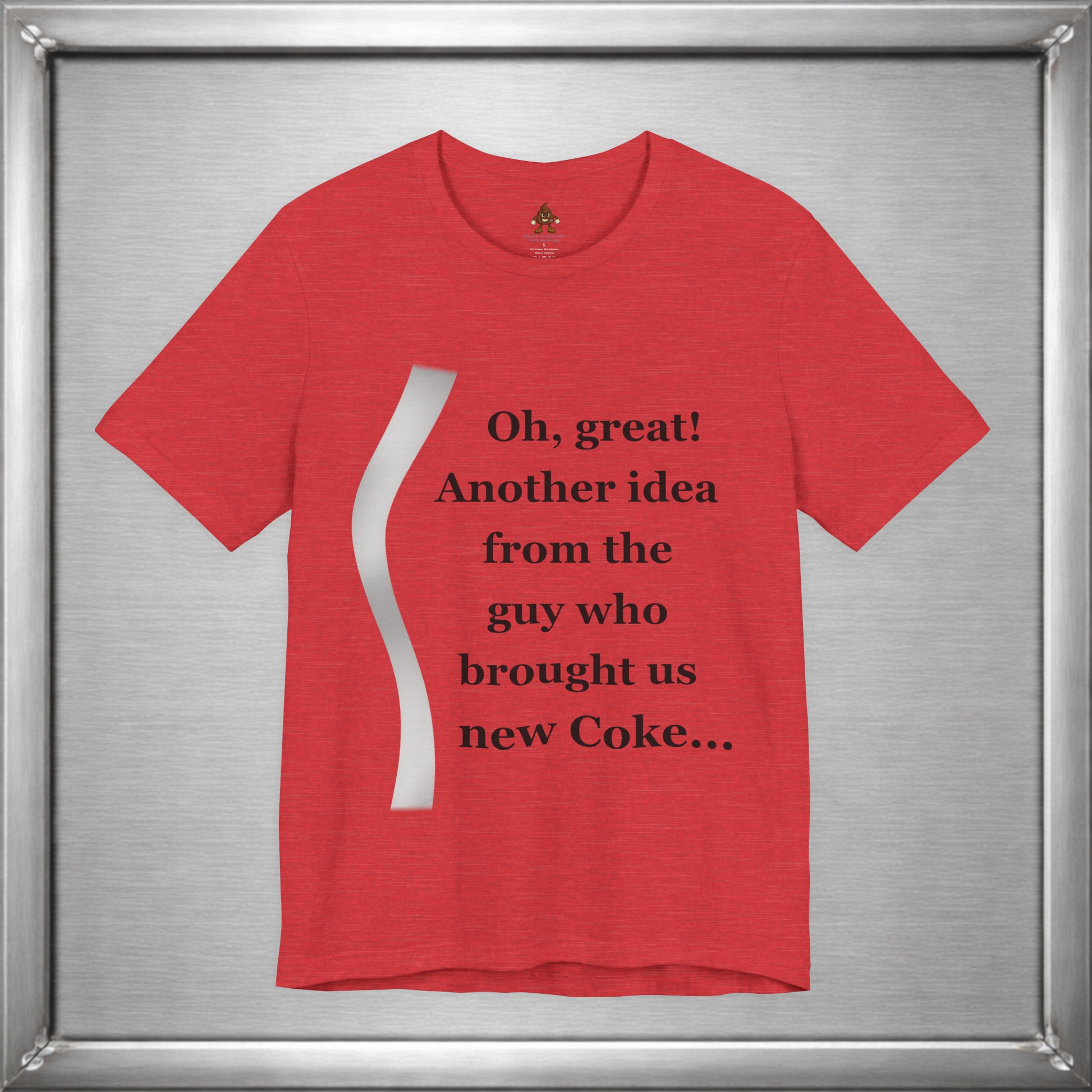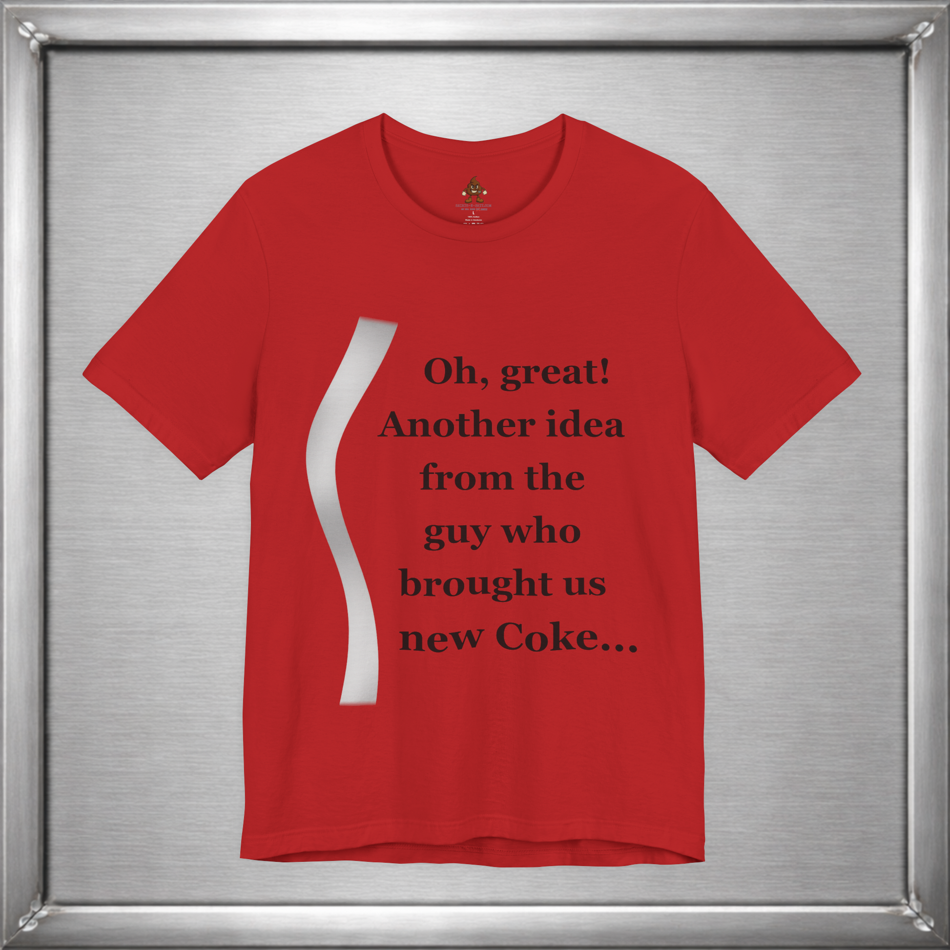 Oh Great. New Coke. T-Shirt – Sarcastic Minimalist 80s Meme Tee – Retro Soda Fail Graphic Shirt